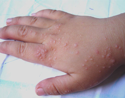 发病部位:乳房、手部、小腿、耳部 及女阴、阴囊、肛门